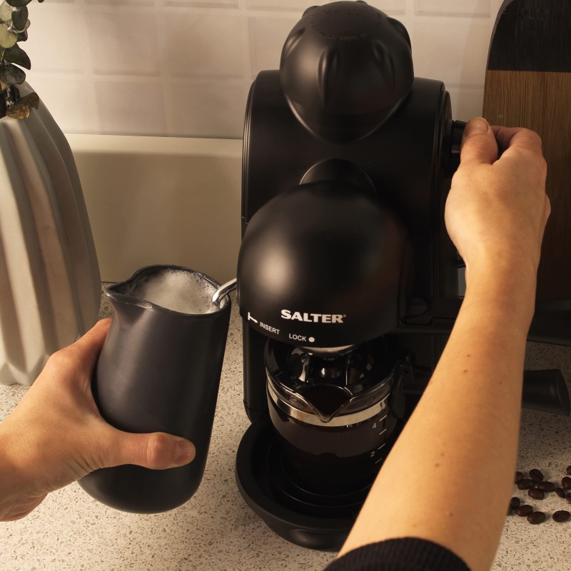 Salter EK3131 Espressimo Coffee Machine - 4-Shot Espresso Maker, Milk Frothing Wand, Includes 240 ml Glass Carafe, Barista Style Latte And Cappuccino, 5-Bar Pressure, Stainless Steel Filter, 870W