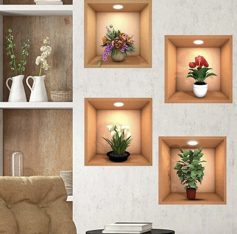 Beautiful modern wooden sticker wall decoration-4pcs