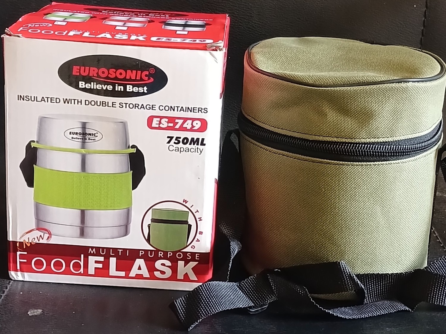 Eurosonic Multi-Purpose Flask Insulated With Double Storage Containers, 750ML Capacity